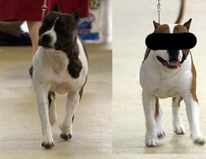 Häufig sieht man bei den heutigen Amstaff eine breite Front, die Hunde tippeln mit ihren Vorderpfoten und versuchen den Schub der Hinterhand auszugleichen. Eine kraftvolles Ausschreiten der Vorderpfoten ist durch die übertriebene Brust nicht mehr möglich, der Hund verliert viel Energie und seine Athletik.